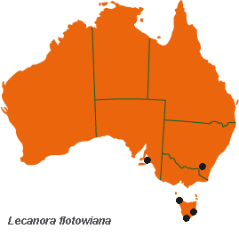 | A species on exposed limestone or nutrient-rich, siliceous rocks in pasture and coastal habitats in S.A., N.S.W. and Tas.; also on Heard Is. The distribution of L. flotowiana is poorly known since it was often misidentified as L. dispersa. Probably a pantemperate lichen. | ||