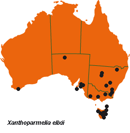 Brunonia 7: 203 (1984). T: 3 km north of Carey Gully, Mount Lofty Ranges, S.A., 22 May 1976, J.A.Elix 2290; holo: MEL; iso: CANB. [Parmelia hypoclystoides auct. non (Müll.Arg.) Gyeln.: J.A.Elix & H.Streimann, J. Hattori Bot. Lab. 51: 88 (1982)]