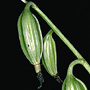 Terrestrial herb forming large clumps. Stems 3-6, erect, cylindrical to angular, 40-60 cm x 1.5-2 cm, fleshy, slightly swollen at the base. Leaves 3-5, erect, apical, petiolate; lamina lanceolate, 40-70 cm x 0.7-0.1 cm, dark green, pleated, thin-textured, apex acute to emarginate. Inflorescence an axillary raceme, 300-900 mm long, tough. Flowers 4-20, resupinate, porrect, star-shaped, 40-50 mm x 40-50 mm, internally brick red with yellow stripes, externally yellow. Sepals and petals spreading widely. Dorsal sepal obliquely erect, oblong to ovate, 35-42 mm x 10-12 mm. Lateral sepals free, divergent, porrect, oblong to ovate, 35-42 mm x 12-14 mm, apex apiculate. Petals widely spreading, recurved, lanceolate, 35-42 mm x 7-9 mm. Labellum unlobed, 15-17 mm x 13-15 mm, yellow inside, with scattered long hairs towards apex; basal margins tubular; apical margins undulate. Callus with 2 narrow parallel plates ending in series of overlapping blunt structures. Column 16 mm long, dilated towards tip, sparsely covered in short hairs. Column foot absent. Capsules pendulous, dehiscent.