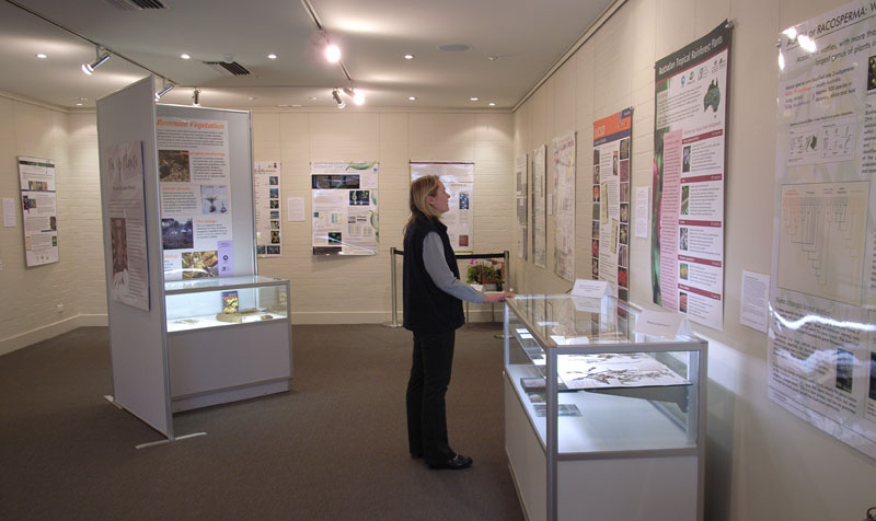 The Centre had considerable involvement in the preparation of exhibitions in the Visitor Centre at the Australian National Botanic Gardens when the topic is relevant. In recent years this has included some extensive displays on cryptogams.