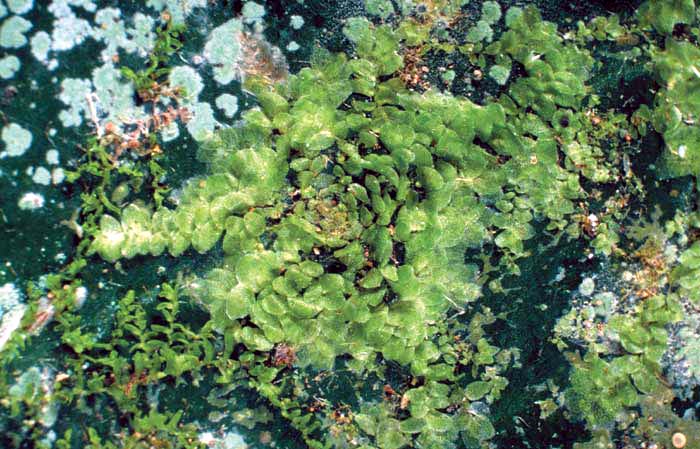 The leaves of many tropical plants carry considerable numbers of leafy liverworts or crustose lichens. You might think that anything growing on a leaf would be harmful to the plant. At the very least, less light gets to the leaf surface and this reduces food production by the leaf.