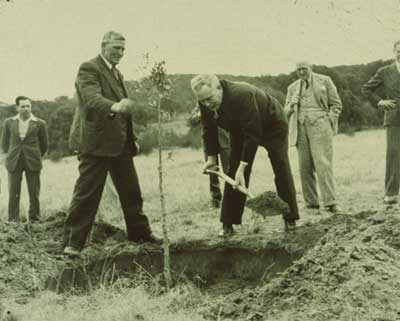On 12 September 1949 during a visit by an international delegation of foresters, the Australian National Botanic Gardens were 'officially' started with the planting of an oak and a eucalypt by the Director of Kew Gardens, Sir Edward Salisbury, and the Prime Mininster of Australia, Ben Chifley.