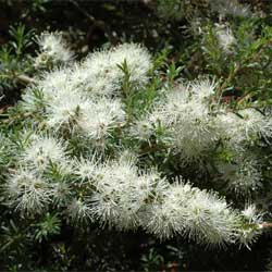 Kunzea ambigua or tick bush is commonly found growing on the coastal strip and adjacent plateaus of eastern Australia (New South Wales, Victoria, Tasmania), often forming dense thickets. This genus, which is of the family Myrtaceae, is confined to Australia and is closely allied to Leptospermum although it is readily distinguished by its long protruding stamens.