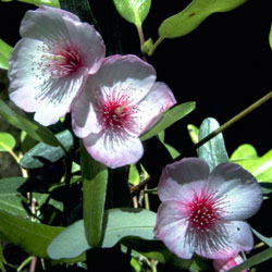 Eucryphia lucida distributionThe genus Eucryphia is in the family Cunoniaceae, a southern hemisphere family of about 27 genera. There are about 8 species of Eucryphia in the world; five being in Australia. There are currently four cultivars of Eucryphia lucida: ‘Pink Cloud', a pale to medium pink flowered variety; ‘Ballerina' a pale pink flowered variety with deep pink stamens; ‘Leatherwood Cream' a variegated leaf variety and ‘Leatherwood Silver', a variety with silver edged leaves.