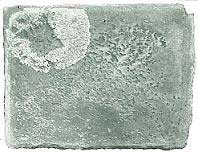 Factors such as mechanical treatment during manufacture and chemical composition influence the susceptibility of glass to future corrosion. For example, a study half a century after Mellor's work showed corrosion worse in glass with a low silica/lime ratio and considerable variation in this ratio - from 6 in some samples of Roman glass to about 2 or less in a couple of samples of medieval or later glass from York and Winchester in England. Adding support to the idea that lichens are not a primary cause is that though all Mellor's glass pieces had corrosion damage (typically small pits) not all the glass pieces bore lichens and in the pieces with lichens not necessarily all pits contained lichens. Others have similarly observed that in pitted glass, lichen-free pits commonly outnumber pits with lichen thalli. However, even allowing for lichens not being primary agents, once lichens have colonised glass they can contribute to its further weathering. Water trapped between a lichen thallus and the glass surface takes up some of the carbon dioxide respired by the lichen and thereby becomes weakly acidic and hence a means of chemical weathering. Rhizines anchoring a lichen to the glass surface may be a source of mechanical stress. Weathering leads to small fragments of glass being loosened from the glass surface and, as Mellor showed, fragments of eroded glass can become incorporated into lichen thalli as they grow. You can see two of Mellor's micro-photos showing that by following this link ![]()