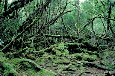 Temperate rainforest, 'Horizontal scrub' dominated by Anodopetalum biglandulosum, Tas