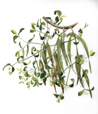 on Amyema miquelii, Toowoomba district, QLD. Painting by Gillian Scott.