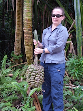 Bronwyn Collins holding fruit of Pandanus elatus, Christmas Island, 2012