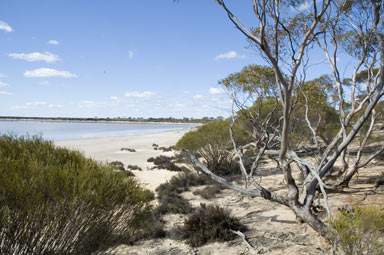 ![]() Salt lake fringed by Melaleuca shrubs and mallee, Lake Gilles, SA |